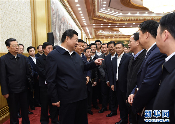 2015年1月12日,中共中央總書記、國家主席、中央軍委主席習近平在北京主持召開座談會,同中央黨校第一期縣委書記研修班學員進行座談并發表重要講話。這是座談會后,習近平與研修班學員親切交流。新華社記者 饒愛民 攝