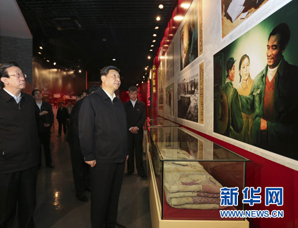 2014年3月17日至18日,中共中央總書記、國家主席、中央軍委主席習近平在河南省蘭考縣調研指導黨的群眾路線教育實踐活動。這是3月17日,習近平參觀焦裕祿同志紀念館。 新華社記者丁林攝