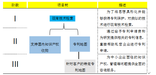 雖然中小型企業能夠對現有技術進行搜索,但就特定發明而言,其在特定區域中與該發明相關的專利的全面搜索已經大大超出其能力范圍。專利地圖項目的目的即是向中小企業提供與研發相關的專利信息,助力其取得專利權。