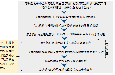現有技術檢索系對中小企業請求予以回應,[12]但為確保這些符合條件的中小企業能夠擁有平等的競爭機會,每個中小企業每年最多只有三項發明能獲得支持。目前,有兩種類型的檢索可用:一種是有助于塑造創意和開發新技術及產品的檢索,另一種是可以在申請之前進行可專利性評估的檢索。