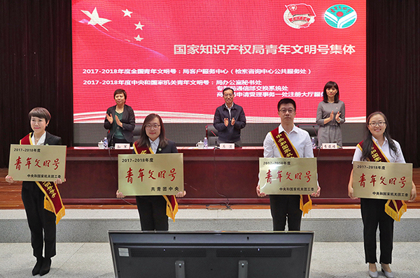 此次授牌的集體是2017-2018年度全國青年文明號——局客戶服務中心,2017-2018年度中央和國家機關青年文明號——局辦公室秘書處、專利局通信部交換系統處、商標局申請受理事務一處注冊大廳服務科。