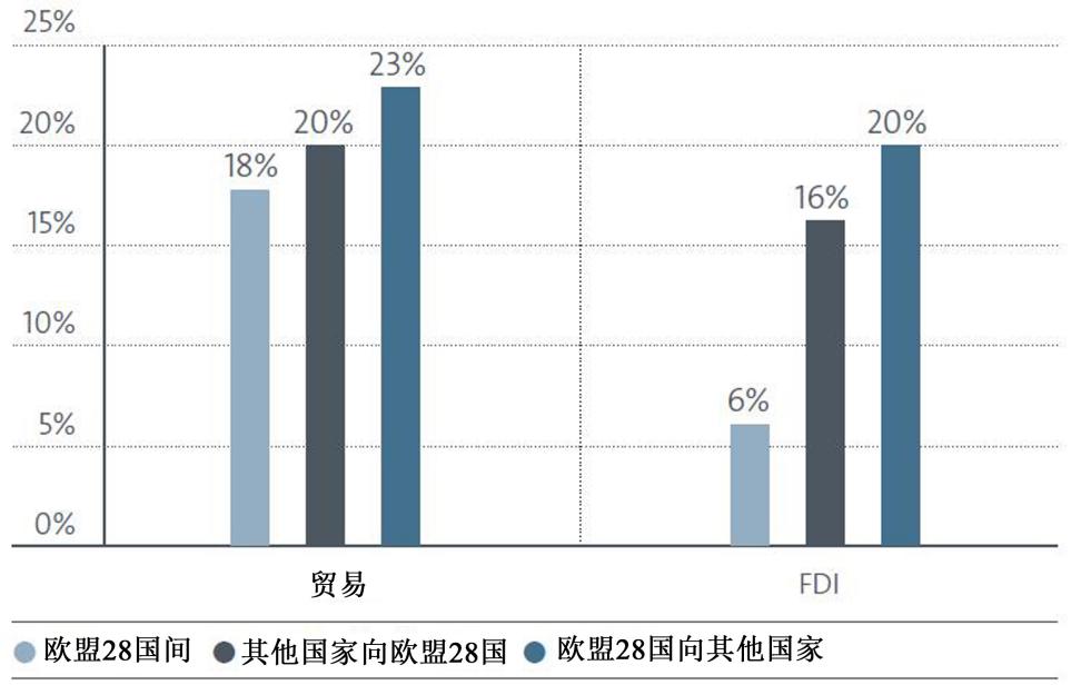 圖1 歐盟貿(mào)易和FDI中高IP行業(yè)所占比例