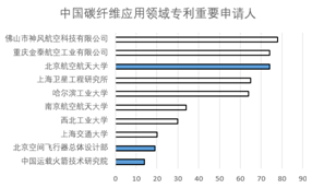 產(chǎn)業(yè)鏈下游碳纖維應(yīng)用領(lǐng)域北京專利申請(qǐng)量前三位分別為北京航空航天大學(xué)、北京空間飛行器總體設(shè)計(jì)部以及中國運(yùn)載火箭技術(shù)研究院,均為航空航天領(lǐng)域的重要單位。由此可見,在碳纖維應(yīng)用領(lǐng)域,我國已經(jīng)具有一定的航空航天應(yīng)用研究基礎(chǔ),而航空航天屬于高端制造業(yè),與我國的政策支撐方向相符合。歐美也正是通過在航空航天領(lǐng)域大力發(fā)展碳纖維帶動(dòng)其產(chǎn)業(yè)鏈發(fā)展,可以預(yù)見,隨著我國大飛機(jī)等飛行器研發(fā)項(xiàng)目的逐漸深入,必將帶動(dòng)碳纖維在高端制造業(yè)具有更為廣闊的發(fā)展前景。