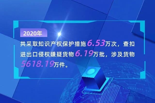 2021年是乘勢而上開啟全面建設社會主義現代化國家新征程、向第二個百年奮斗目標進軍的具有特殊重要意義的一年。2021年以來,全國海關牢固樹立保護知識產權就是保護創新的理念,立足新發展階段,貫徹新發展理念,構建新發展格局,繼續自覺將海關知識產權保護工作融入黨和國家事業發展全局,以持續開展“龍騰行動”為抓手,進一步加強知識產權海關保護工作力度,有力打擊進出口侵權貨物違法行為,一季度全國海關累計查扣進出口侵權貨物12885批次,扣留侵權嫌疑貨物數量1332.9萬件。下一步,全國海關將以習近平新時代中國特色社會主義思想為指導,全面貫徹黨的十九大和十九屆二中、三中、四中、五中全會精神,按照黨中央、國務院決策部署,堅決從嚴打擊各類進出口侵權違法行為,充分發揮知識產權海關保護作用,為促進建設現代化經濟體系、激發全社會創新活力、推動構建新發展格局做出新的更大貢獻。