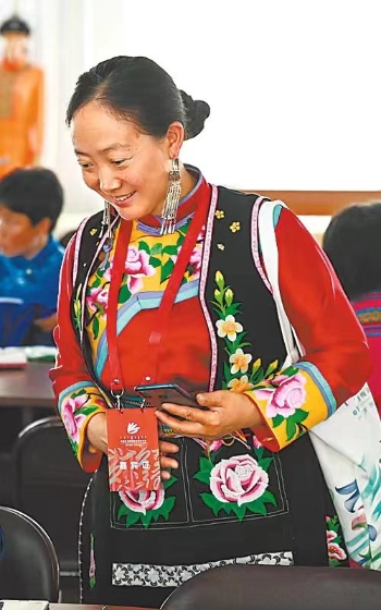 陳云珍帶領(lǐng)著繡娘在繼承傳統(tǒng)非遺技藝的基礎(chǔ)上勇于開拓,推陳出新,將中華優(yōu)秀傳統(tǒng)文化與現(xiàn)代元素深度融合,讓傳統(tǒng)羌繡在新時代煥發(fā)出新光彩。