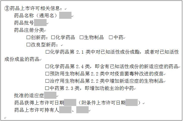 (a)在請求書中應當寫明藥品上市許可相關信息:包括藥品名稱、藥品注冊分類以及批準的適應癥等;