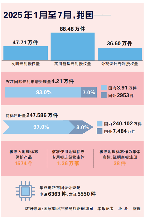 一圖速覽我國(guó)1月至7月知識(shí)產(chǎn)權(quán)統(tǒng)計(jì)數(shù)據(jù)
