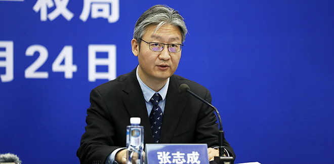 [張志成] 感謝您的提問。剛才也介紹了,2019年全國知識產權保護社會滿意度提升了2.1分,其中,法律與政策保護滿意度最高,這主要體現了社會各界對知識產權法律與政策制定實施工作的充分肯定。2019年7月,習近平主席主持召開中央全面深化改革委員會第九次會議,審議通過了《關于強化知識產權保護的意見》。11月,中辦、國辦印發《意見》,為各地區各部門開展知識產權保護工作提供了根本遵循和行動指南。國家知識產權局堅決貫徹落實黨中央、國務院重要決策部署,致力于統籌推進知識產權“嚴保護、大保護、快保護、同保護”各項工作,今天重點介紹以下幾個方面。