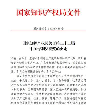 根據《中國專利獎評獎辦法》規定,經國務院有關部門知識產權工作管理機構、地方知識產權局、有關全國性行業協會,以及中國科學院院士和中國工程院院士等推薦,中國專利獎評審委員會評審,社會公示,國家知識產權局和世界知識產權組織決定授予“一種測量參考信號的信令配置系統及方法”等30項發明、實用新型專利中國專利金獎,“彩色超聲診斷儀”等10項外觀設計專利中國外觀設計金獎;國家知識產權局決定授予“陶瓷基復合材料的連接方法”等60項發明、實用新型專利中國專利銀獎,“掃地機”等15項外觀設計專利中國外觀設計銀獎;國家知識產權局決定授予“一種治療胃病的中藥及其制備工藝”等825項發明... 利中國專利優秀獎,“集成無煙灶”等56項外觀設計專利中國外觀設計優秀獎;國家知識產權局決定授予江蘇省知識產權局等8家單位中國專利獎最佳組織獎,上海市知識產權局等20家單位中國專利獎優秀組織獎,楊衛等15位院士中國專利獎最佳推薦獎。