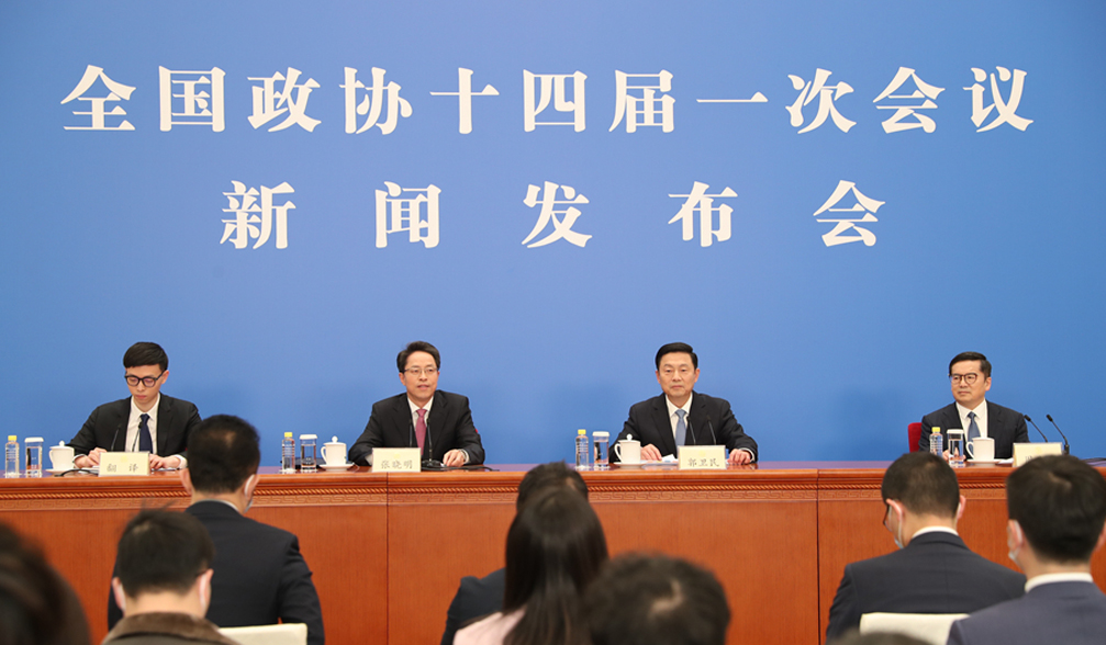 全國政協十四屆一次會議舉行視頻會議,委員進行大會發言