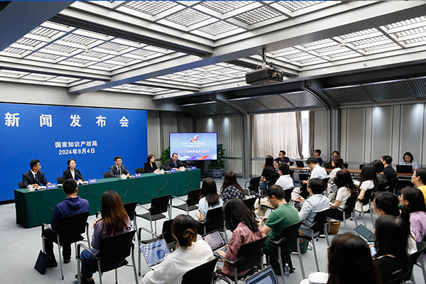 [國家知識產(chǎn)權(quán)局新聞發(fā)言人,辦公室副主任 梁心新] 各位媒體朋友,大家上午好。歡迎參加國家知識產(chǎn)權(quán)局9月例行新聞發(fā)布會。出席今天發(fā)布會的有國家知識產(chǎn)權(quán)局知識產(chǎn)權(quán)保護(hù)司副司長宋蓓蓓女士、公共服務(wù)司司長楊帆先生、國際合作司副司長(主持工作)盛莉女士、知識產(chǎn)權(quán)出版社董事長劉超先生。我是國家知識產(chǎn)權(quán)局新聞發(fā)言人,辦公室副主任梁心新。